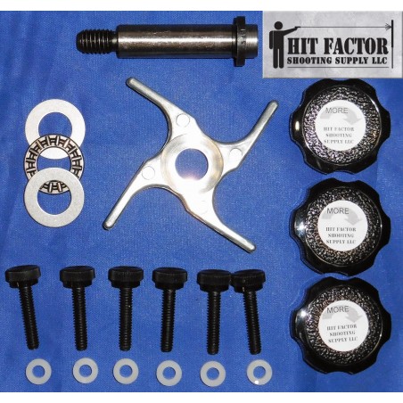 Ultimate Shellplate Bearing Kit Dillon RL 550 B/C replaces the index sprocket with a modified sprocket that has the room required to install the shellplate bearing kit. Run out is eliminated and this results in more consistent ammo. The bearing kit smoothens the action of the press, reducing powder spillage and increasing tactile feel while priming. Priming operation will be more consistent. Thumbscrews replace bolts to speed up the adjustment of the press. Thumbscrews for 3 powder measures and 3 powder measure adjustment knobs. This kit works with both new and old style powder measures.