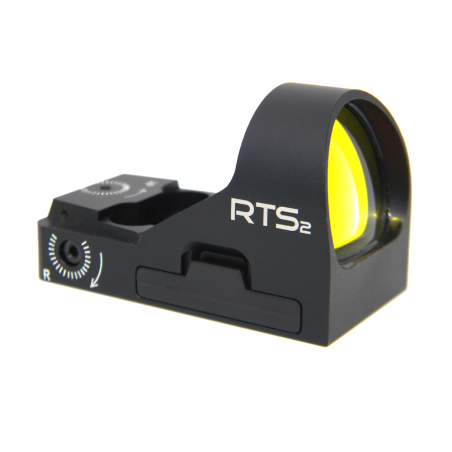 The RTS2 is one of C-MORE Systems smallest reflex sights. Just like our competition sights, the RTS2 head up display provides an unobstructed sight picture in which the red dot hovers on the sight line, illuminating the point of impact on the target, creating the fastest target acquisition in existence, and unlimited eye relief. Similarly it uses a beam-splitter lens made of glass; hard coated for maximum scratch resistance, and light transmission, while the parallax free design enables targets to be acquired without the need to center the dot in the lens. The RTS2 uses a CR2032, lithium battery that is contained within a removable battery tray which permits battery replacement without dismounting the sight; this eliminates the need for re-zeroing when replacing a battery. The battery tray is O-ring sealed, and is part of the waterproofing that goes into every RTS2. A 10 position manually operated push button switch provides precision intensity adjustment, previous intensity return, and auto off after 8 hours of inactivity.